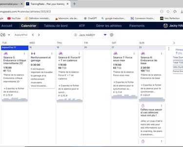 Nos forfaits sont soutenus par la plateforme TrainingPeaks Coach de Jacky HARDY