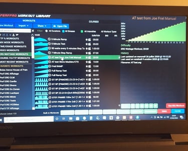 Une gamme de tests de performance (simple ou avec prises de lactates) permet d’évaluer le potentiel physiologique, les premières séances d'entraînement, la progression dans la durée et de calibrer au mieux le suivi personnalisé : PMA, FTP, Zones d'entraînement, Seuils d'effort, Seuils Ventilatoires ; SV1-SV2 ...